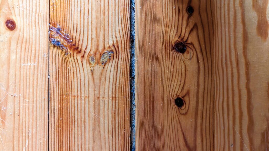 Mökillämme lattialankkujen välissä on todella isoja rakoja, koska talo on elänyt niin paljon vuosien saatossa. Niiden paikkaamisessa tulee varmasti olemaan haastetta.